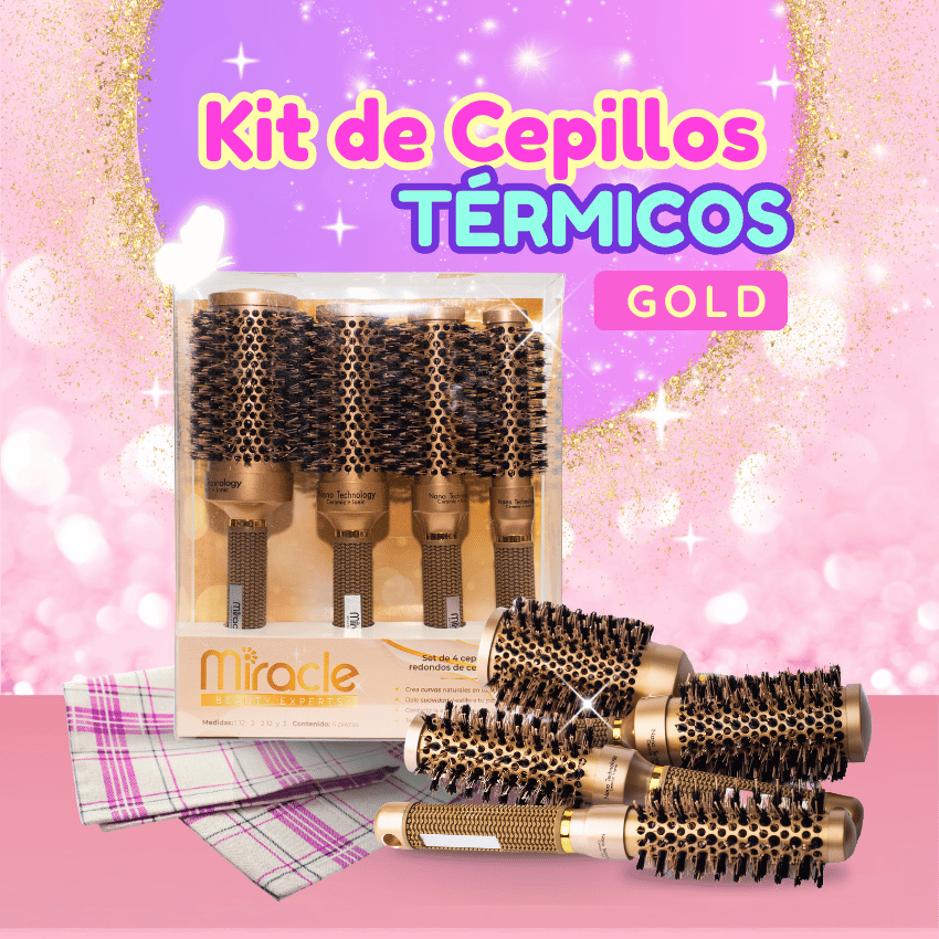 Logra peinados profesionales con nuestro Combo de Cepillos Térmicos Dorados (x4). Sus diferentes tamaños distribuyen el calor para un secado rápido, volumen y brillo sin frizz. ¡El set esencial para un cabello espectacular!