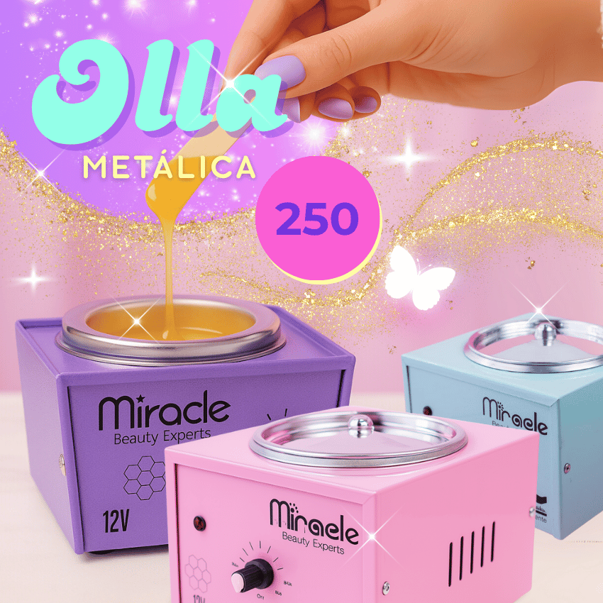 Calentador de cera de mayor capacidad (250ml), disponible en lila, rosado y agua marina. Ideal para uso continuo en salones, manteniendo la lista de cera para depilaciones de mayor tamaño con facilidad