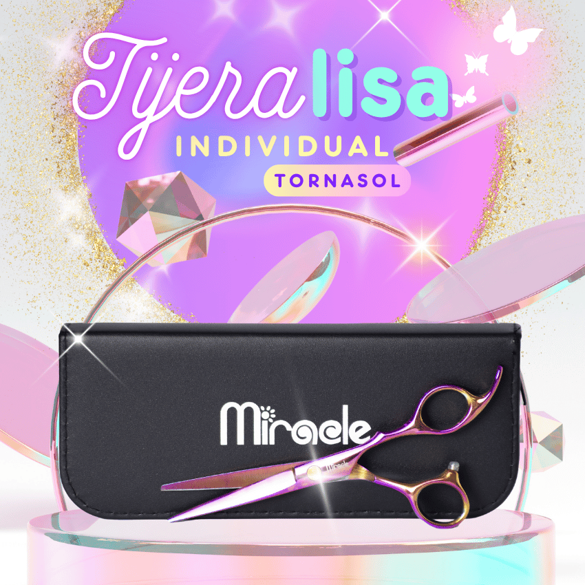 Una tijera de corte de pelo profesional, diseñada con un hermoso acabado tornasol que la hace destacar. Sus hojas lisas y afiladas permiten realizar cortes rectos, despuntados y desfilados con una precisión excepcional, deslizándose suavemente por el cabello para un acabado impecable. Ideal para barberos y estilistas que buscan calidad y estilo en una sola herramienta.