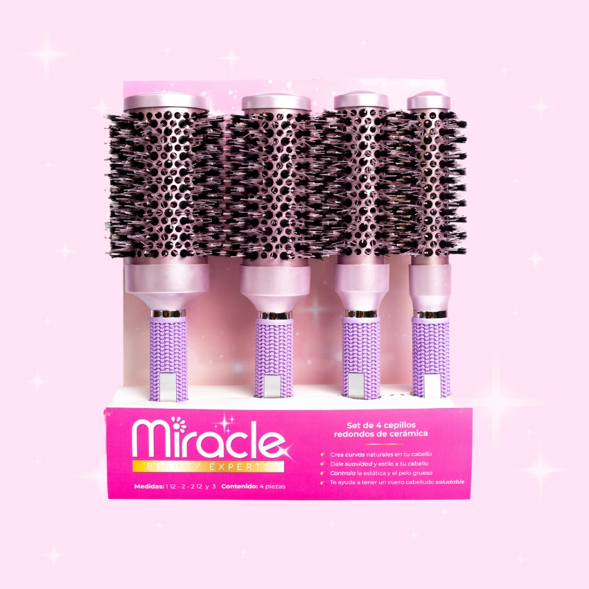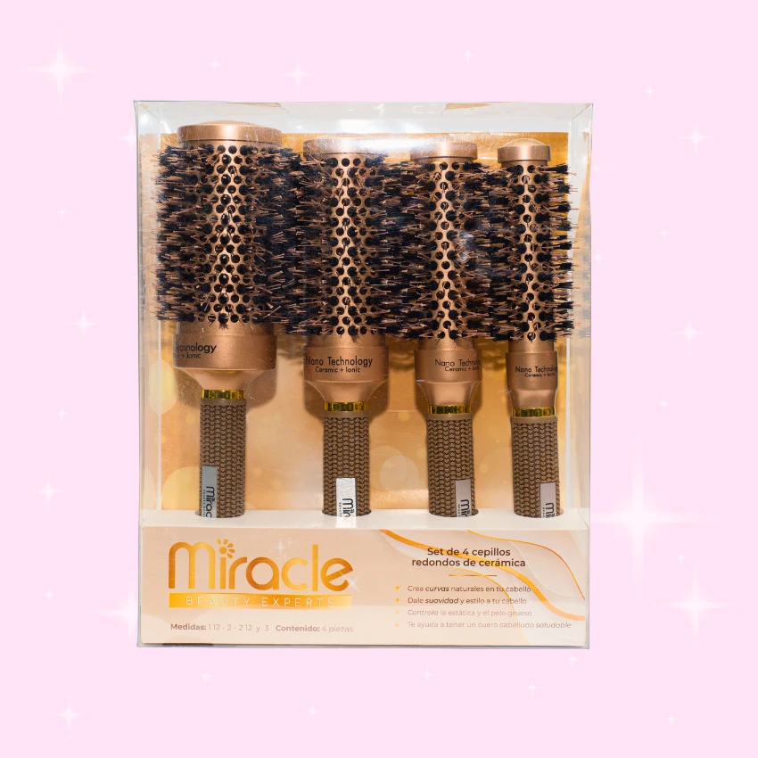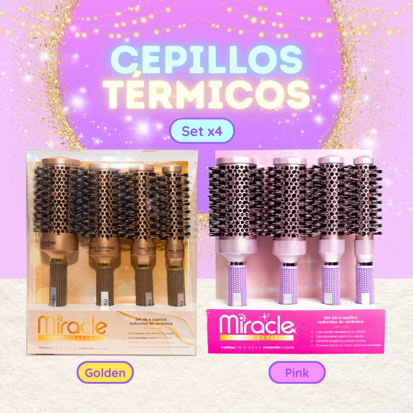 Logra peinados profesionales con nuestro Combo de Cepillos Térmicos Dorados o Rosados(x4). Sus diferentes tamaños distribuyen el calor para un secado rápido, volumen y brillo sin frizz. ¡El set esencial para un cabello espectacular!