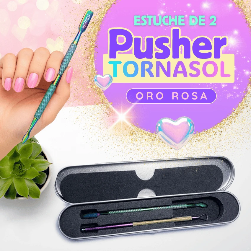 Set de empujadores de cutícula con estilo. Disponibles en tornasol y oro rosa. ¡Diseño y funcionalidad para tu manicura!