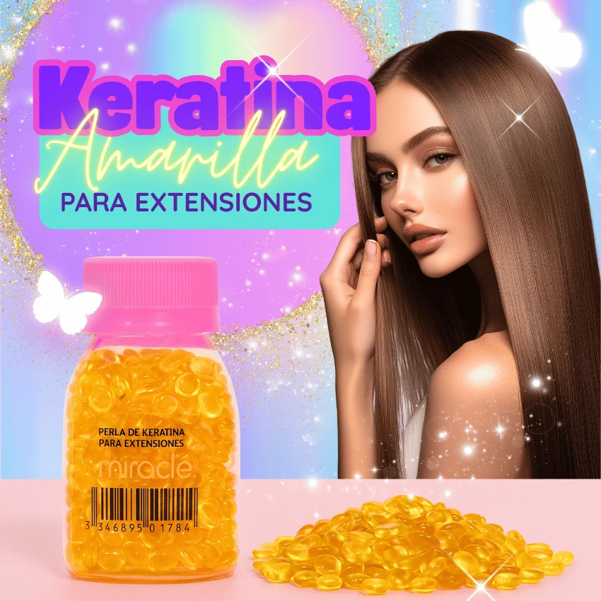 Fijación segura y duradera. La Keratina Amarilla para Extensiones garantiza una unión firme entre cabello natural y extensiones. Ideal para técnicas profesionales, ofrece resistencia al calor, acabado limpio y larga duración. Perfecta para estilistas que buscan resultados impecables y confiables.