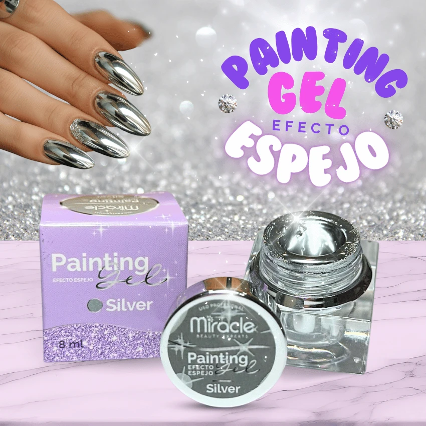 Gel de alta pigmentación para acabados metálicos. Crea diseños con efecto espejo en tus uñas. ¡Brillo impactante y moderno!