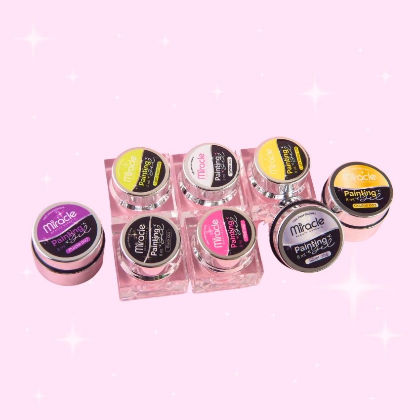 Geles de alta pigmentación para nail art. Colores intensos (blanco, plata, dorado y azul). ¡Diseños precisos y profesionales!