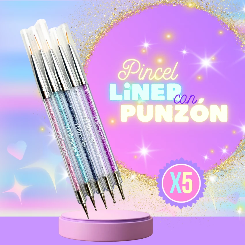 Set completo que combina pinceles liner de alta precisión y punzones para crear líneas finas, puntos y detalles artísticos en uñas. Cada herramienta tiene mango escarchado en colores vibrantes, ofreciendo estilo y comodidad al trabajar. Cerdas resistentes, puntas definidas y doble funcionalidad para un acabado profesional en cualquier diseño de manicure. Perfecto para nail art creativo en salón o uso personal.