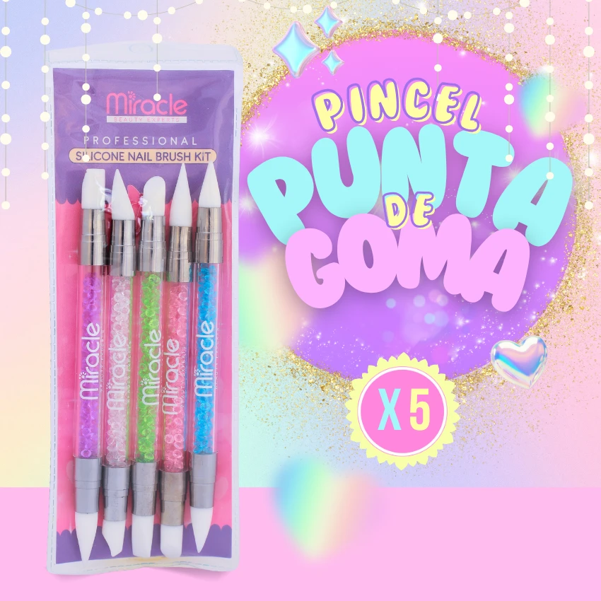 Herramientas de doble extremo con puntas de goma flexibles en diversas formas (cónica, cincel, plana). Ideales para esculpir geles 3D, aplicar pigmentos cromados, limpiar cutículas y moldear decoraciones con precisión. Mangos acrílicos con cristales decorativos.