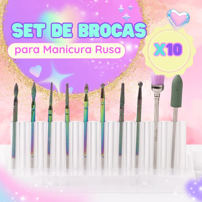Todo lo que necesitas en un solo set. El Set de brocas Manicura Rusa Mix incluye variedad de formas y texturas para limpieza de cutícula, preparación de superficie y detalles precisos. Ideal para manicuristas que dominan la técnica rusa y buscan resultados impecables en cada servicio.
