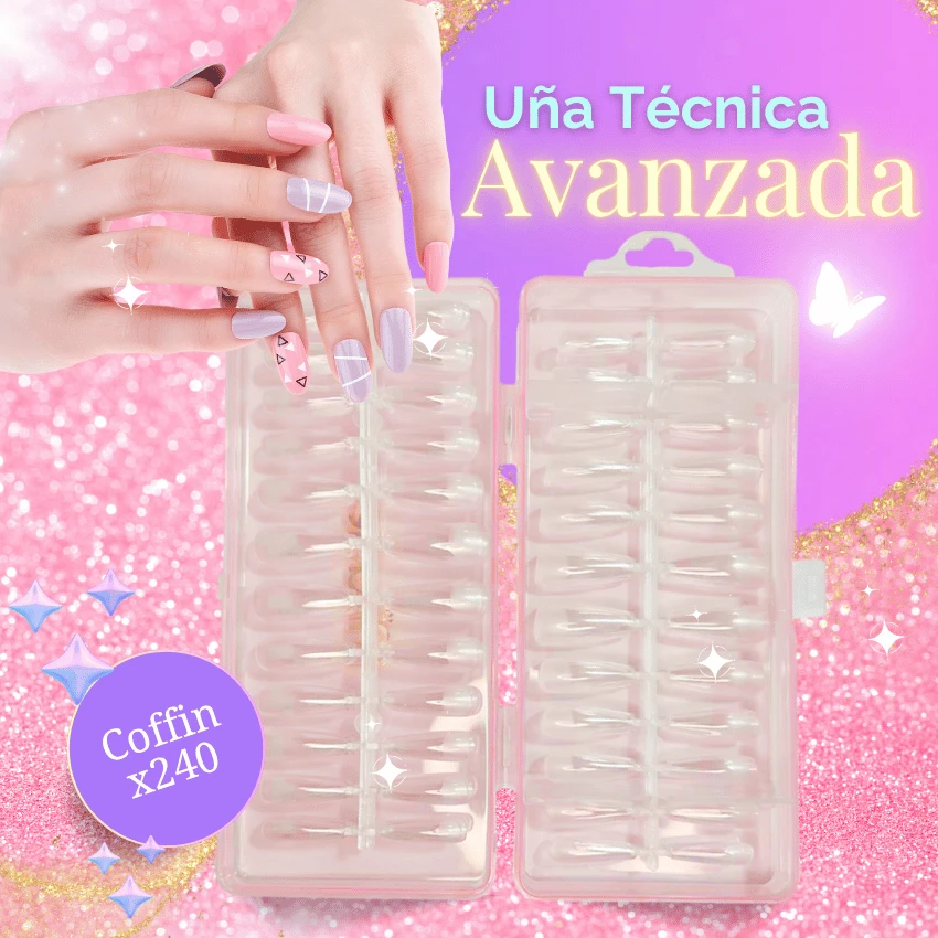 Tips preformados para técnica press on. Aplicación rápida y resultados perfectos. ¡Ideal para manicuras duraderas y a la moda!